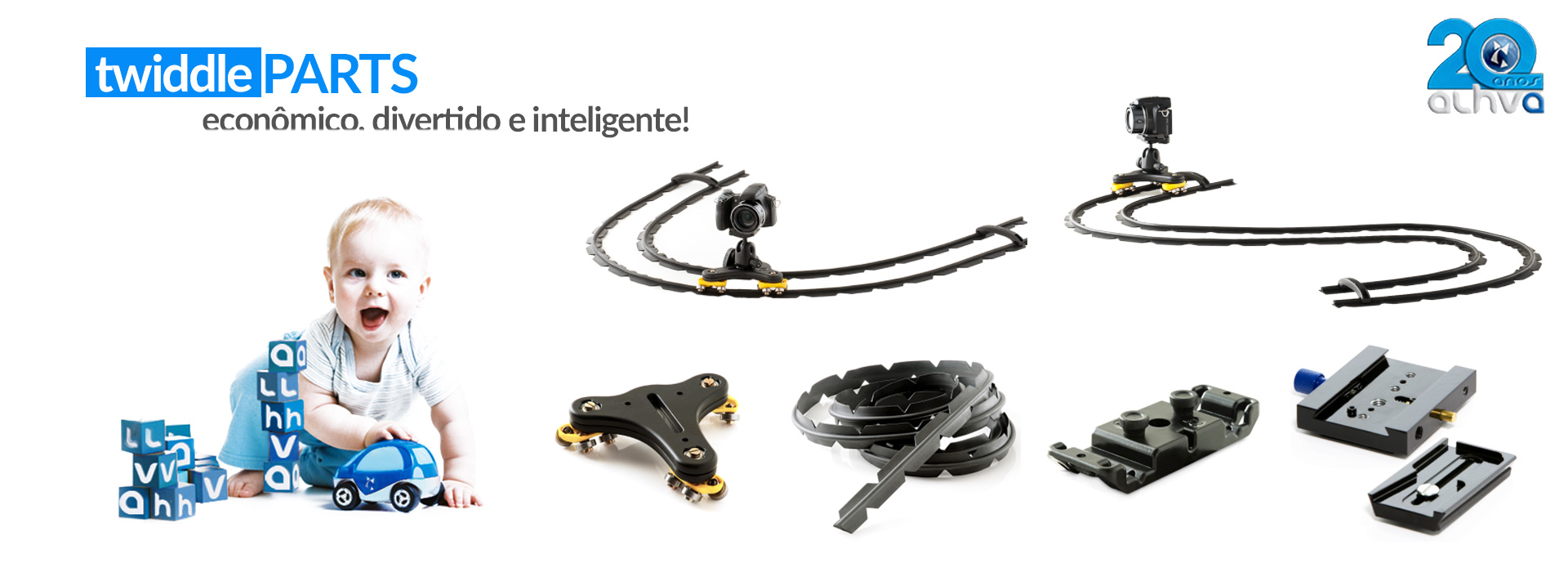 Surge então o TWIDDLE PARTS, trazendo uma série de peças termo plásticas injetadas em materiais nobres para a montagens de trilhos rígidos com emendas e quadrantes de movimentos planos de dois eixos X / Y.